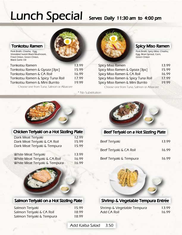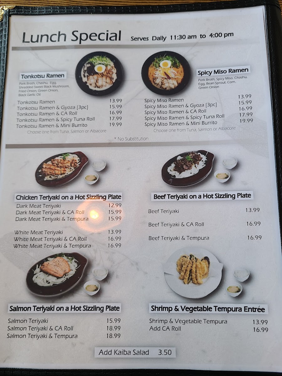 Kaiba Japanese Ramen, Sushi & Grill - Anaheim Menu (2025 Update)
