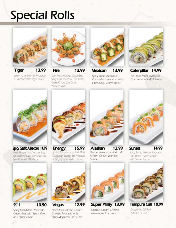Shrimp tempura, krab meat, avocado, cucumber with spicy mayo and eel sauce.